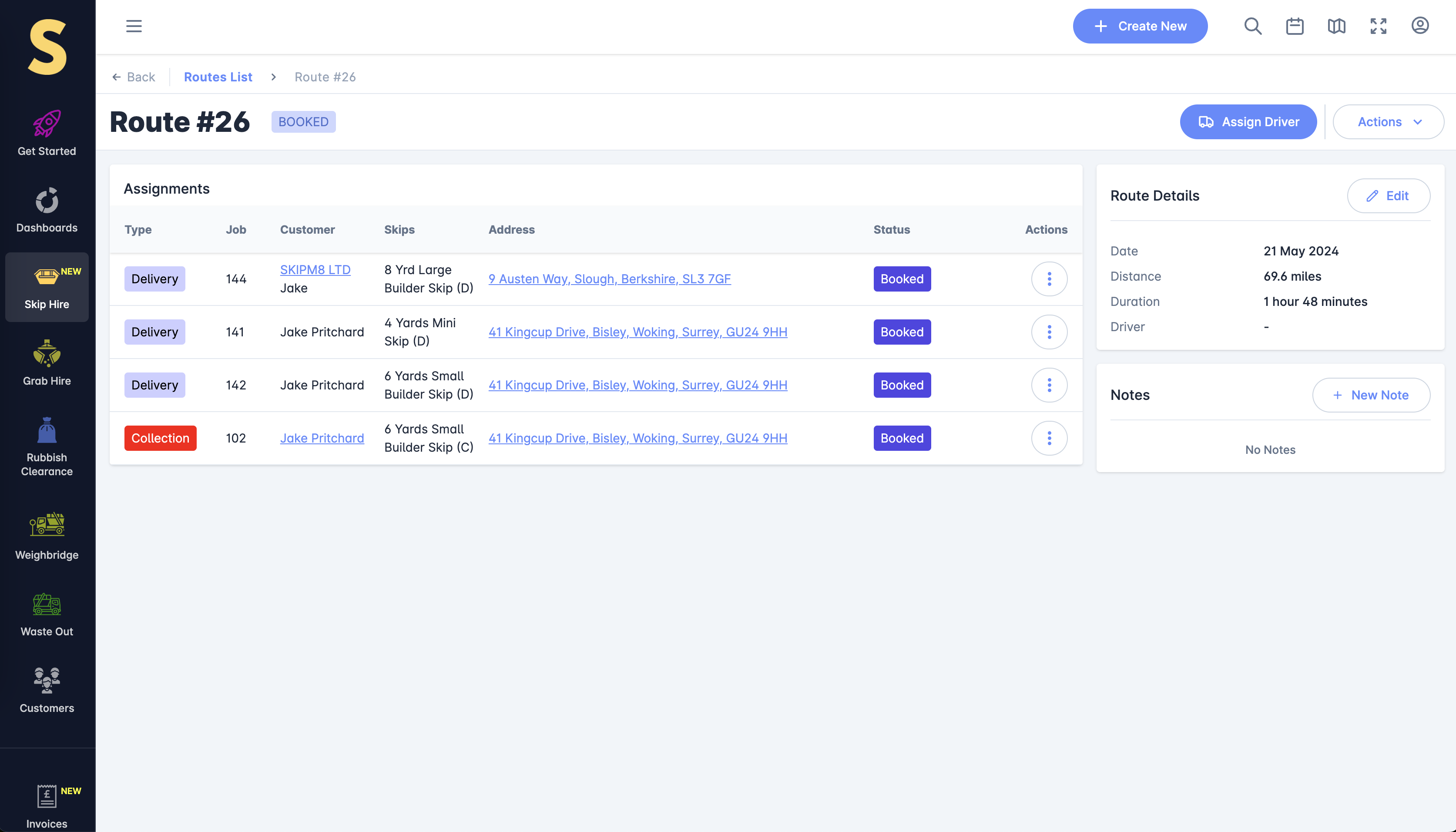 Select your assignments and allow SKIPM8 to optimise the perfect route for your drivers. Ensure efficient and effective route planning for all your jobs.
